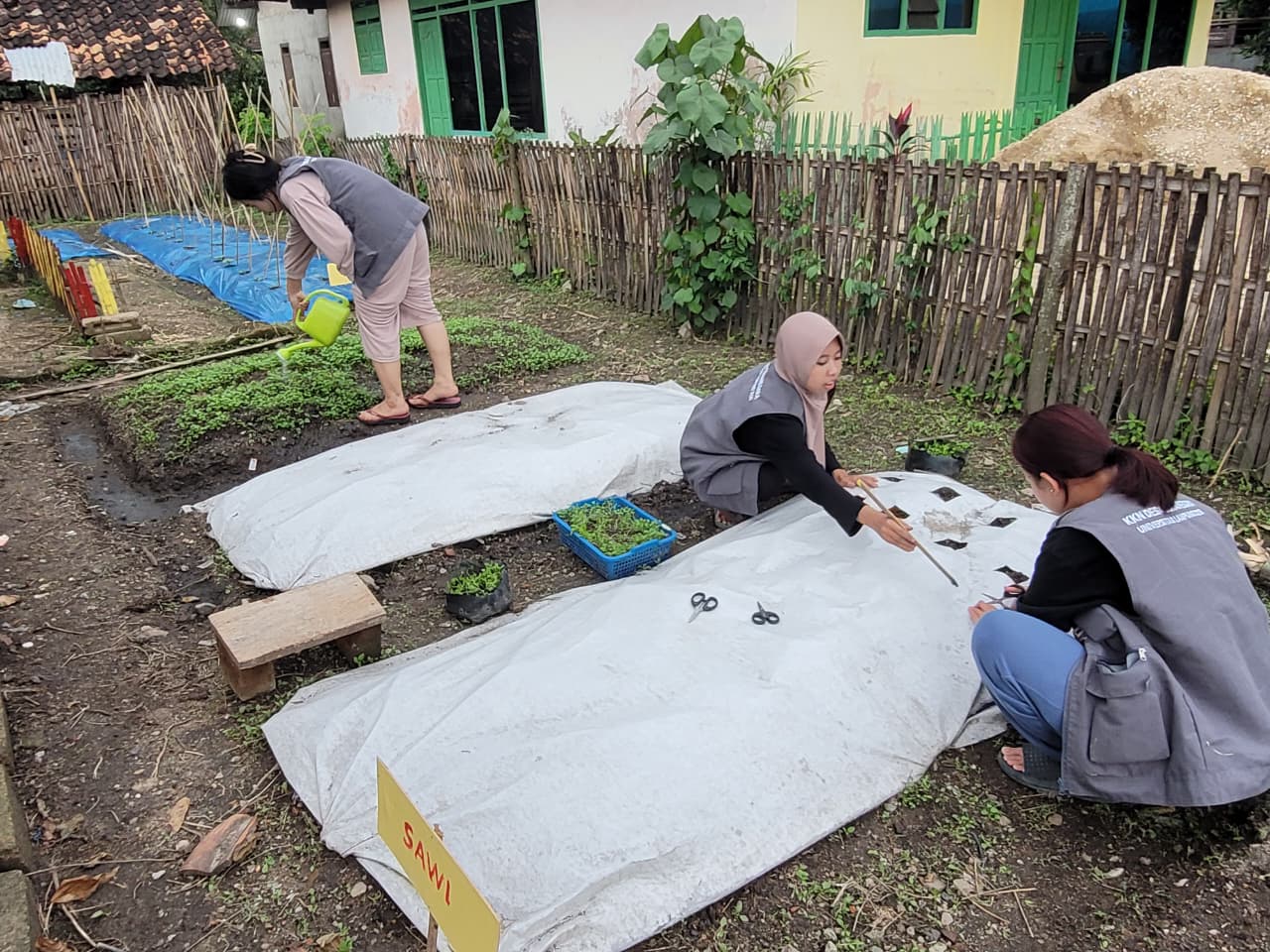 Sore hari pukul 16.00–17.00 WIB, kegiatan dilanjutkan dengan monitoring Taman Gizi Keluarga, termasuk penanaman sawi serta perawatan tanaman berupa penyiraman agar tanaman tetap terjaga kondisinya.
