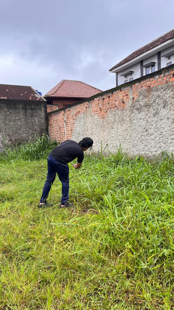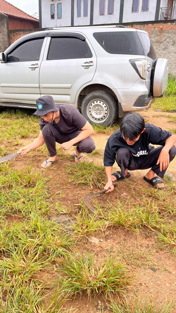 Pada pagi hari, mahasiswa KKN melaksanakan kegiatan persiapan tempat senam dengan melakukan pembabatan rumput di lapangan RT 4, Lingkungan 2, Kelurahan Gedong Meneng. Kegiatan ini bertujuan untuk membersihkan dan merapikan lapangan agar dapat digunakan dengan nyaman dan aman sebagai lokasi senam bersama warga. Dengan semangat gotong royong, mahasiswa membersihkan rumput liar dan meratakan area lapangan.