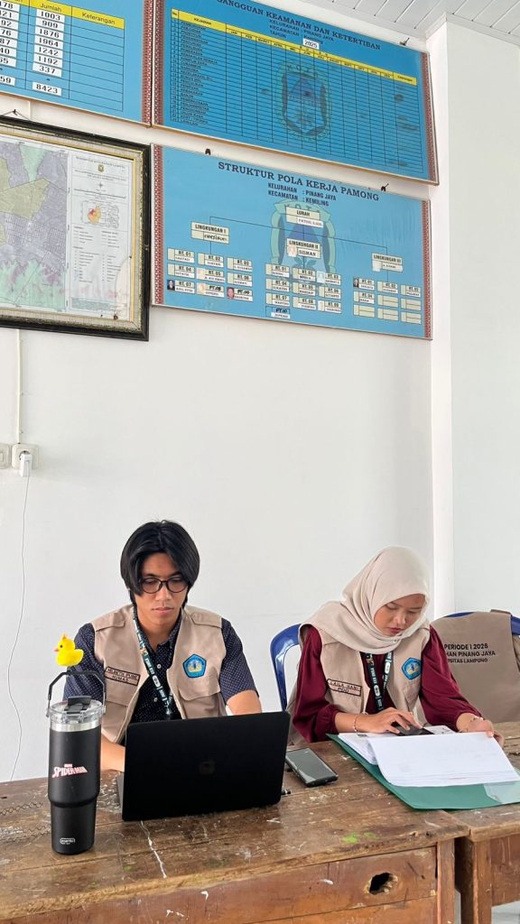 Pada hari Senin, 26 Januari 2026, kelompok KKN Kelurahan Pinang Jaya, Kecamatan Kemiling, kembali melaksanakan kegiatan rutin di kantor kelurahan. Kegiatan yang dilakukan pada hari ini adalah piket kelurahan dengan fokus pendataan administrasi kependudukan, khususnya memasukkan data Kartu Keluarga (KK) yang ada di wilayah Pinang Jaya. Kegiatan ini dilakukan sebagai bagian dari upaya pendataan yang akurat untuk mendukung program pelayanan masyarakat di kelurahan.