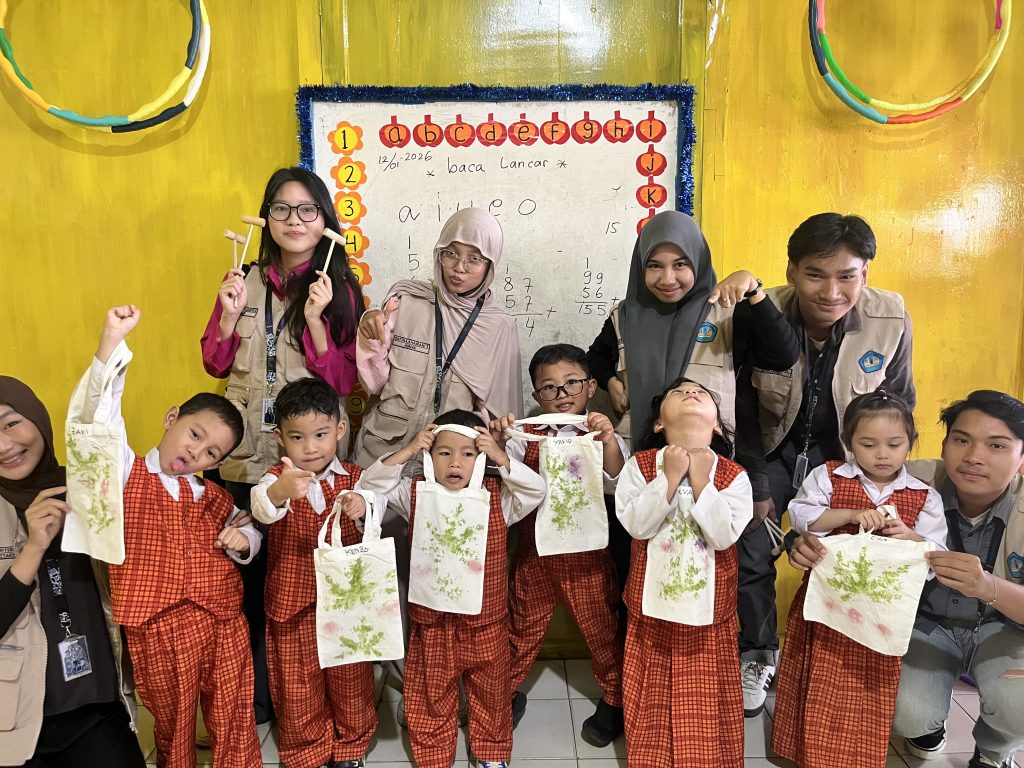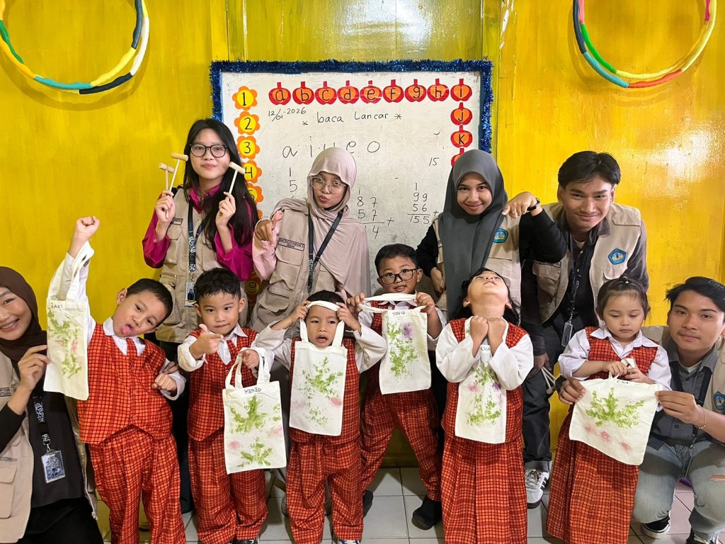 Kegiatan Kuliah Kerja Nyata (KKN) merupakan salah satu bentuk pengabdian mahasiswa kepada masyarakat yang bertujuan untuk mengimplementasikan ilmu pengetahuan secara langsung serta memberikan kontribusi nyata di bidang pendidikan dan lingkungan. Salah satu program kerja yang dilaksanakan dalam kegiatan KKN ini adalah praktik eco print menggunakan media tote bag yang bertempat di TK Al-Akbar. Kegiatan ini dirancang sebagai sarana pembelajaran kreatif bagi anak usia dini dengan menggabungkan unsur edukasi, seni, dan kepedulian terhadap lingkungan.