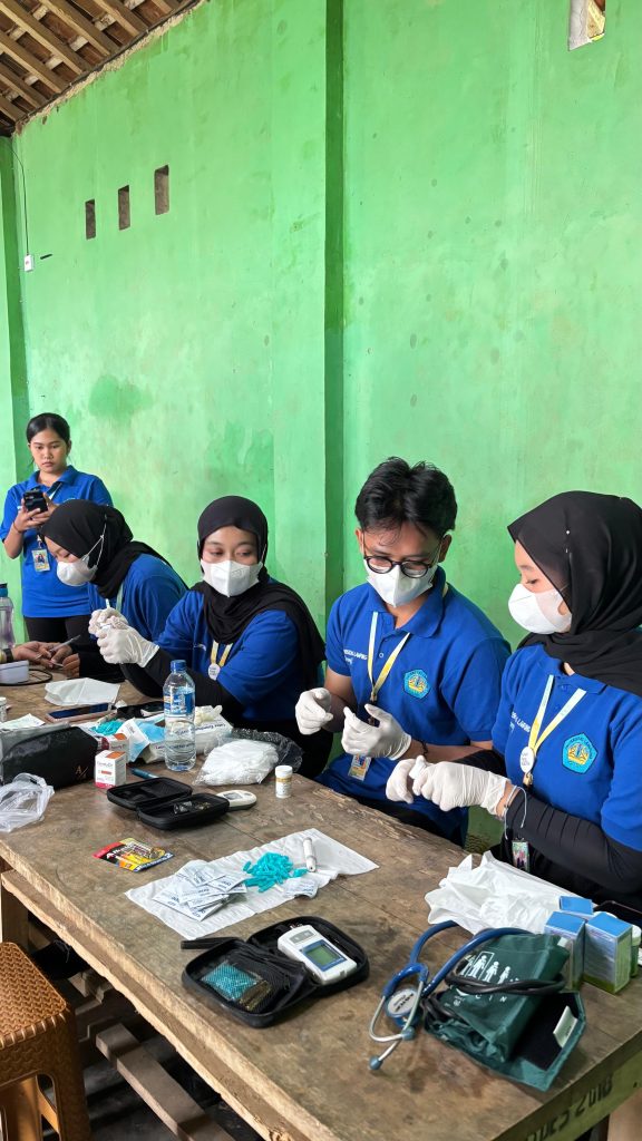 Pelaksanaan pemeriksaan kesehatan dilakukan setelah kegiatan senam selesai. Mahasiswa KKN dengan sigap mendampingi warga selama proses pemeriksaan, mulai dari pencatatan data, pengukuran tekanan darah, hingga penyampaian hasil pemeriksaan. Warga yang mengikuti pemeriksaan tampak antusias dan merasa terbantu dengan adanya layanan kesehatan gratis ini, mengingat tidak semua masyarakat memiliki kesempatan untuk melakukan pemeriksaan kesehatan secara rutin.