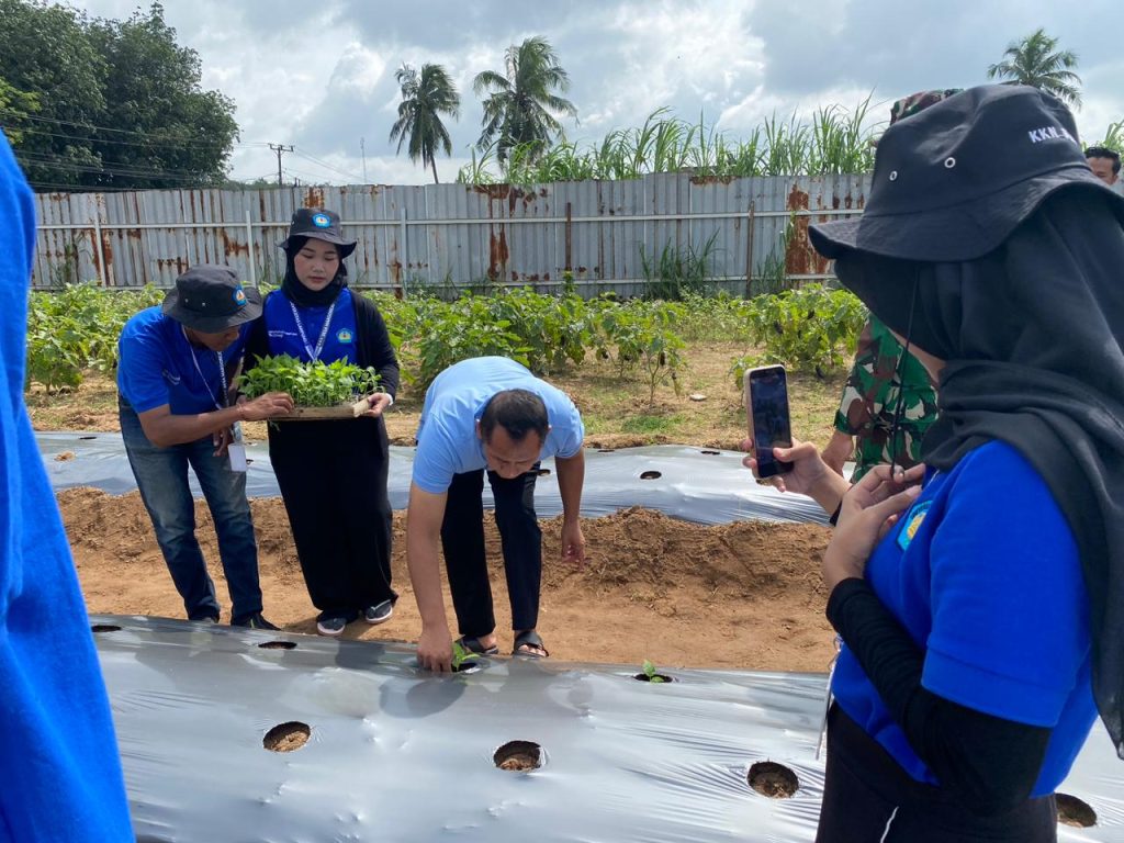 Dalam kegiatan ini, mahasiswa KKN bersama seluruh pihak yang hadir melakukan penanaman bibit cabai dan terong dengan jumlah bibit kurang lebih 250 bibit. Proses penanaman dilakukan secara bersama-sama pada lahan yang telah dipersiapkan melalui tahap pembersihan, pemupukan, pemasangan mulsa, dan pembentukan bedengan.