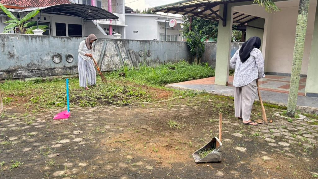 Tidak hanya di dalam posko, pembersihan juga difokuskan pada area luar, khususnya halaman posko. Mahasiswa KKN bersama-sama menyapu daun kering, membersihkan sampah yang ada di sekitar halaman, serta merapikan area sekitar agar terlihat lebih bersih dan nyaman. Lingkungan yang bersih dinilai penting untuk mendukung kelancaran kegiatan yang akan melibatkan masyarakat.