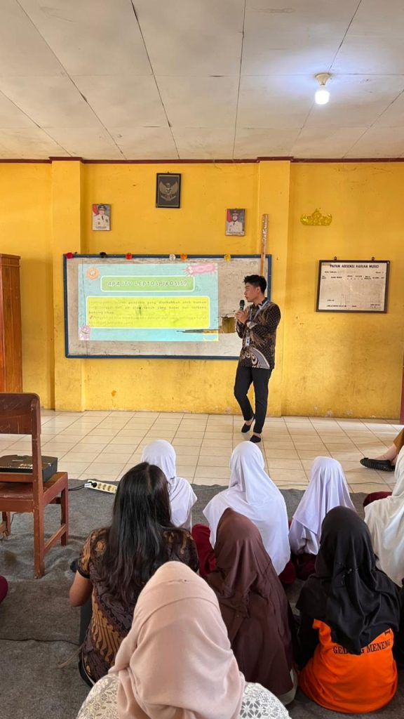 Selanjutnya, pada pukul 10.00 WIB, tim KKN melanjutkan kegiatan ke SD Negeri 1 Gedong Meneng untuk melaksanakan program kerja bidang kesehatan berupa sosialisasi penyakit leptospirosis kepada siswa kelas 3 hingga kelas 6. Sosialisasi ini mencakup penjelasan mengenai pengertian leptospirosis, penyebab penyakit, gejala yang ditimbulkan, serta upaya pencegahan yang dapat dilakukan dalam kehidupan sehari-hari.