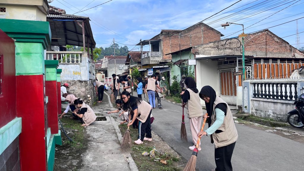 Pada kegiatan kerja bakti, fokus pembersihan diarahkan pada area jalan lingkungan dan fasilitas umum di sekitar permukiman warga. Mahasiswa KKN bersama masyarakat membersihkan sampah-sampah yang berserakan, menyapu daun kering, mencabut rumput liar yang tumbuh di pinggir jalan dan selokan, serta merapikan area sekitar rumah warga agar tampak lebih bersih dan tertata. Aktivitas ini dilakukan secara bergotong royong dengan penuh semangat kebersamaan.