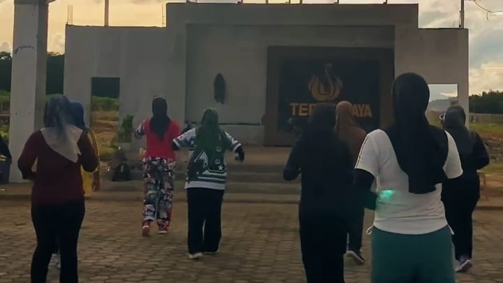 Senam sore yang dipandu oleh instruktur senam Desa Serdang ini berlangsung meriah dengan iringan musik yang energik. Puluhan warga dari berbagai usia, mulai dari ibu-ibu muda hingga lansia, tampak kompak mengikuti setiap gerakan yang dipandu dengan semangat.