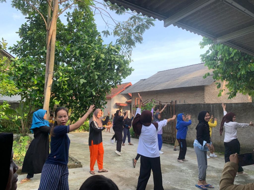 Pada sore hari, para lansia berkumpul di lokasi kegiatan untuk mengikuti rangkaian gerakan senam yang dipandu secara sederhana dan disesuaikan dengan kemampuan peserta. Suasana kegiatan berlangsung hangat, tertib, dan penuh kebersamaan antara mahasiswa dan masyarakat setempat.