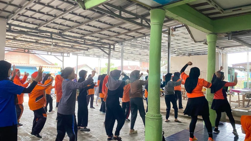 Acara dimulai sejak pagi hari di lapangan terbuka, di mana puluhan ibu-ibu setempat berkumpul dengan semangat untuk mengikuti gerakan senam yang energik. Suasana ceria dan penuh semangat olahraga tampak menyelimuti lokasi kegiatan saat para mahasiswa KKN berbaur bersama warga dalam irama musik senam.