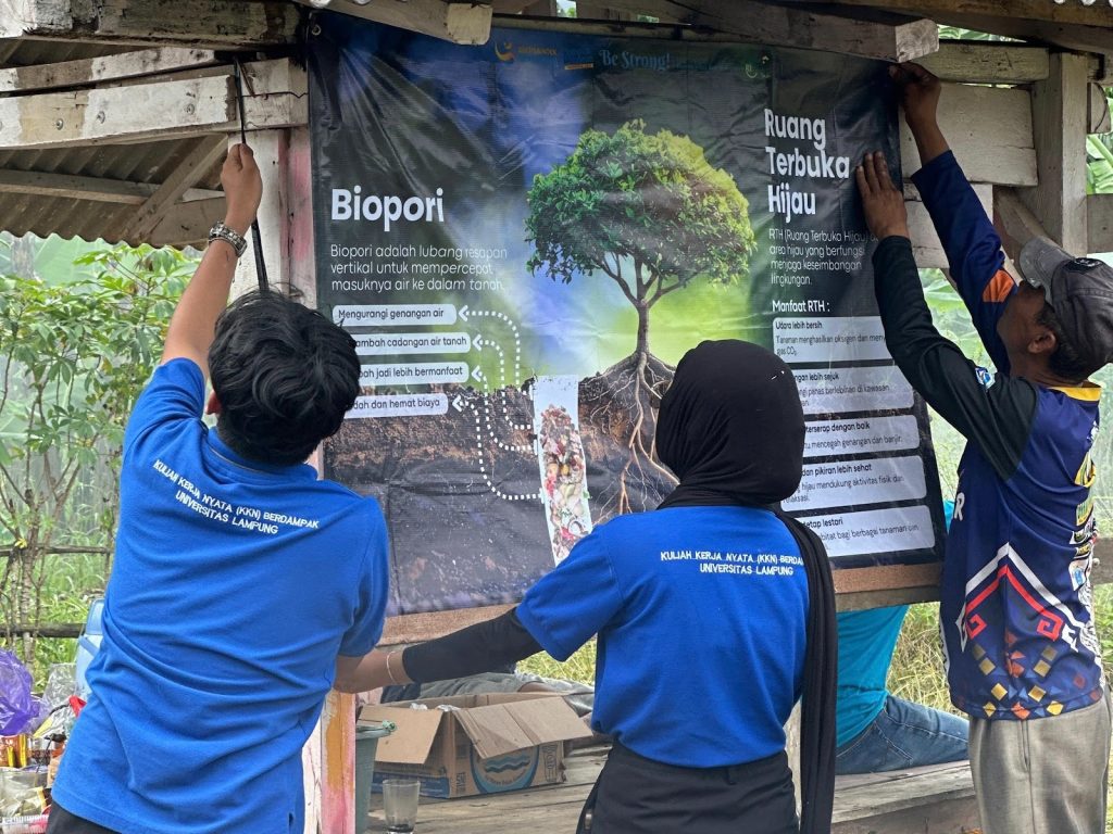 Sebagai bagian dari kegiatan edukasi lingkungan, mahasiswa KKN juga melakukan pemasangan banner edukasi mengenai Ruang Terbuka Hijau (RTH) di area gazebo yang berada di sekitar lokasi lahan. Banner tersebut berisi informasi mengenai pengertian, manfaat, serta pentingnya keberadaan RTH bagi lingkungan dan masyarakat. Pemasangan banner ini bertujuan sebagai media edukasi visual yang dapat dibaca dan dipahami oleh masyarakat secara berkelanjutan. Lokasi gazebo dipilih karena merupakan tempat berkumpul warga, sehingga diharapkan pesan edukasi yang disampaikan dapat menjangkau lebih banyak masyarakat dan meningkatkan kesadaran akan pentingnya menjaga lingkungan.