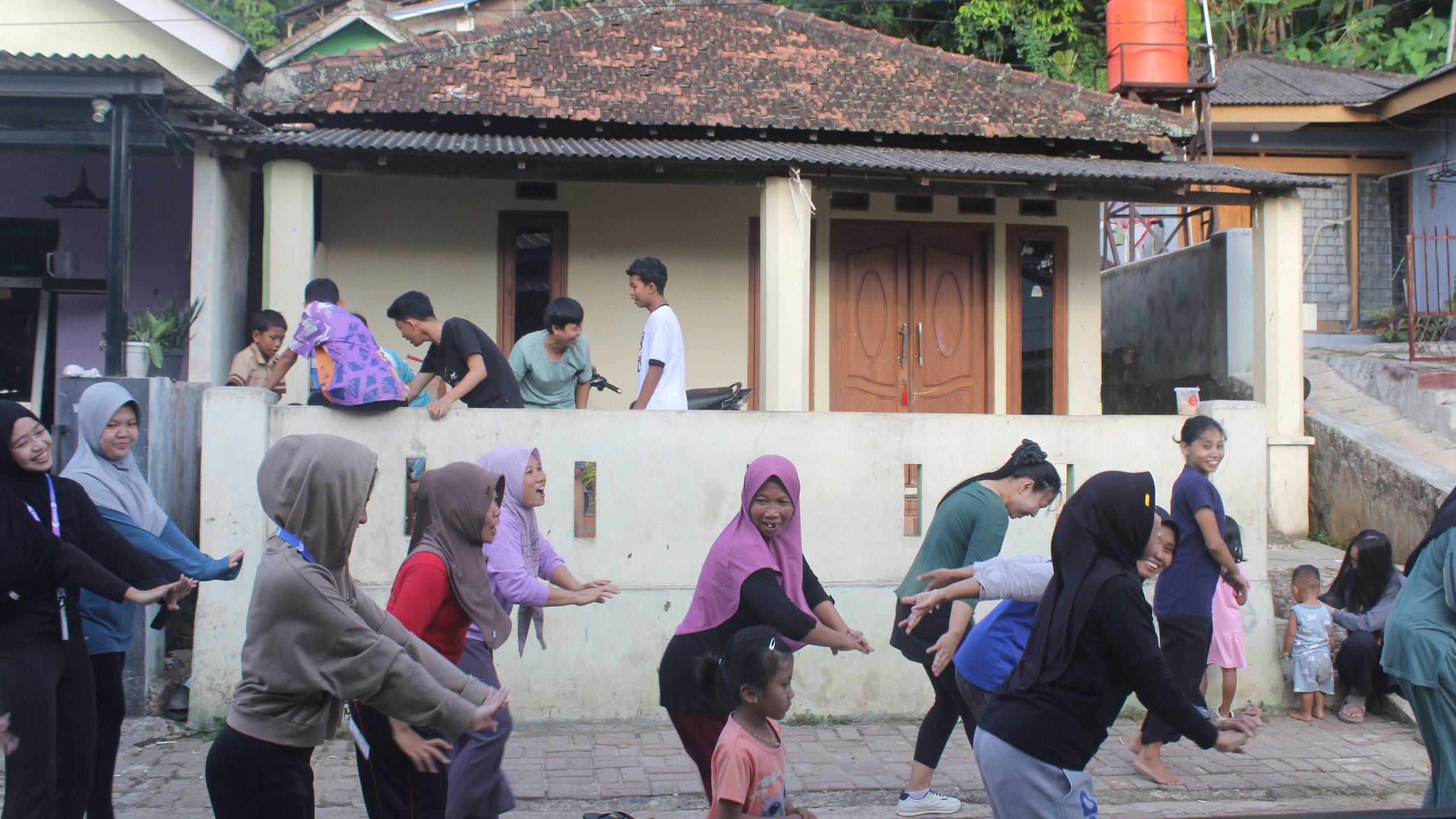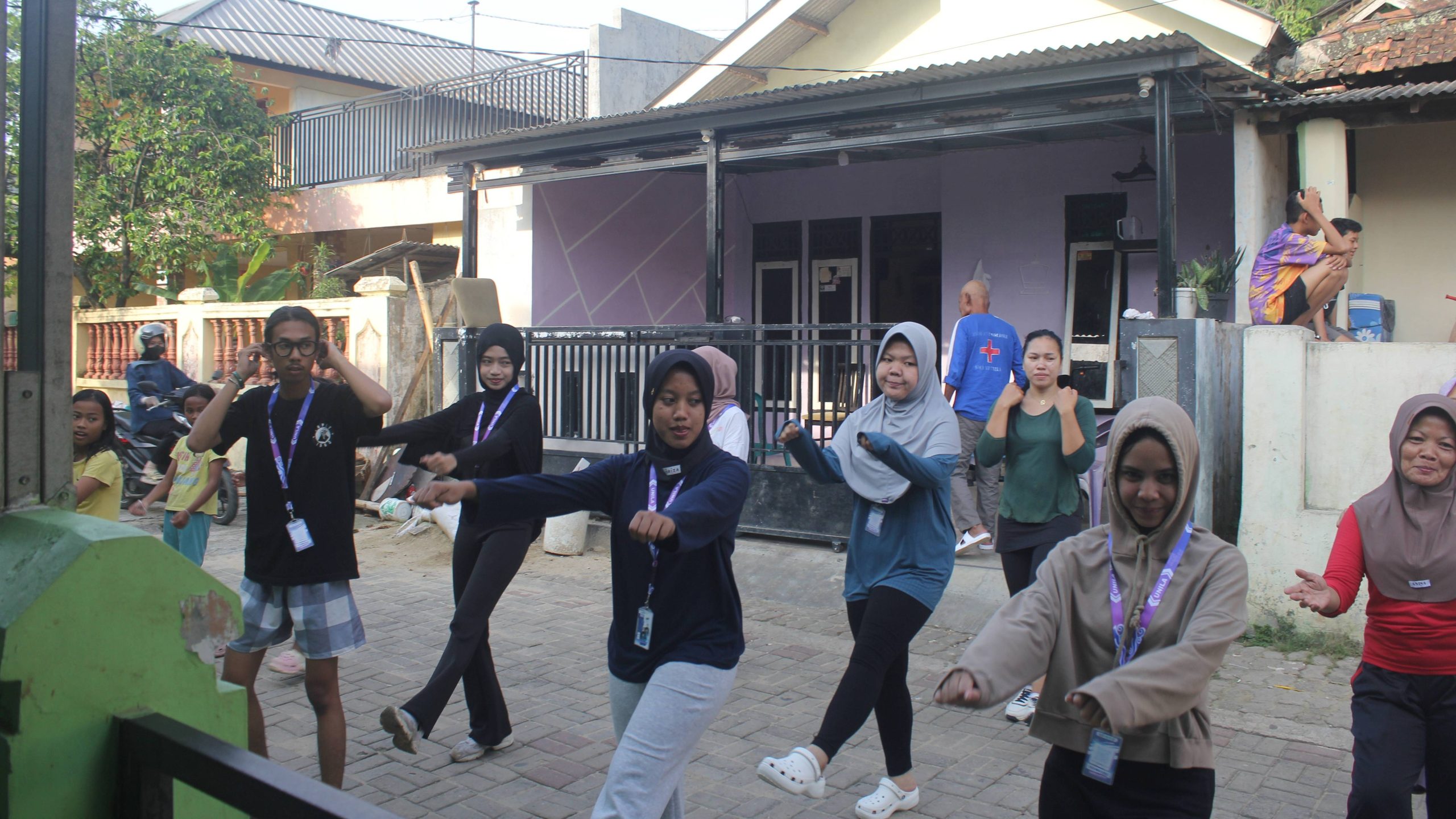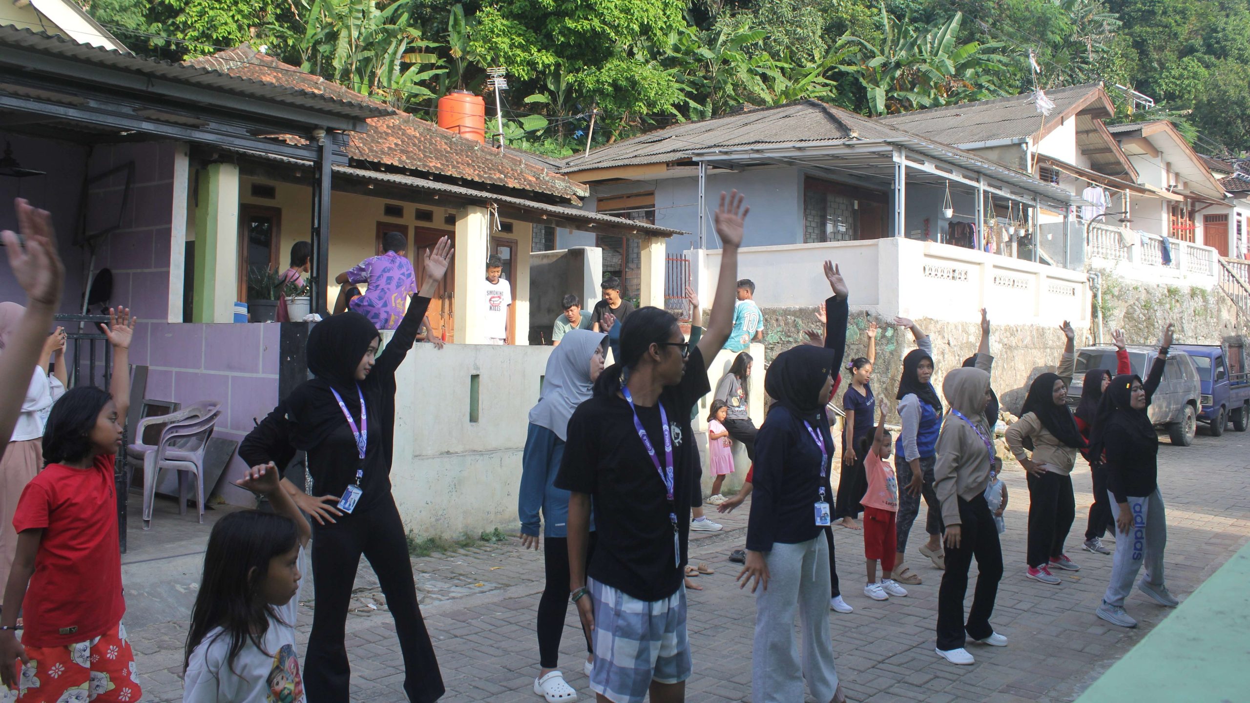 Suasana olahraga sore itu terasa sangat cair dan penuh tawa. Uniknya, posisi instruktur senam dilakukan secara bergantian. Saat senam kreasi terbaru diputar, mahasiswa mengambil alih pimpinan barisan. Namun, ketika musik senam favorit ibu-ibu yang diputar, giliran perwakilan warga yang maju memimpin gerakan. Kolaborasi ini membuat suasana menjadi hidup dan tidak kaku.