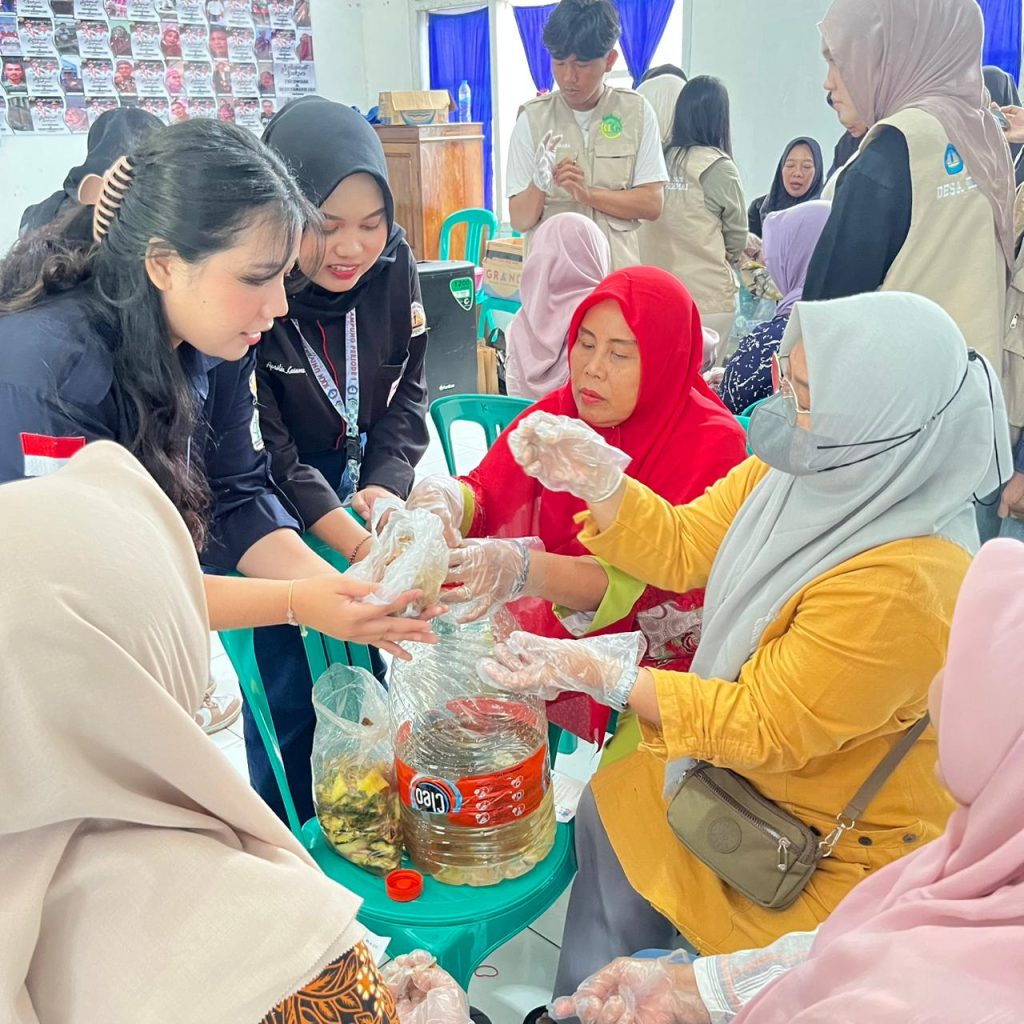 Agenda dimulai dengan pemberian materi mengenai pentingnya mengelola sampah rumah tangga, khususnya limbah organik yang dihasilkan dari dapur. Kami menjelaskan bagaimana kulit buah, seperti jeruk, bisa diolah kembali menjadi cairan serbaguna daripada hanya dibuang begitu saja. Penjelasan ini bertujuan agar warga lebih paham bahwa sampah organik sebenarnya punya manfaat tinggi jika diolah dengan cara yang benar.