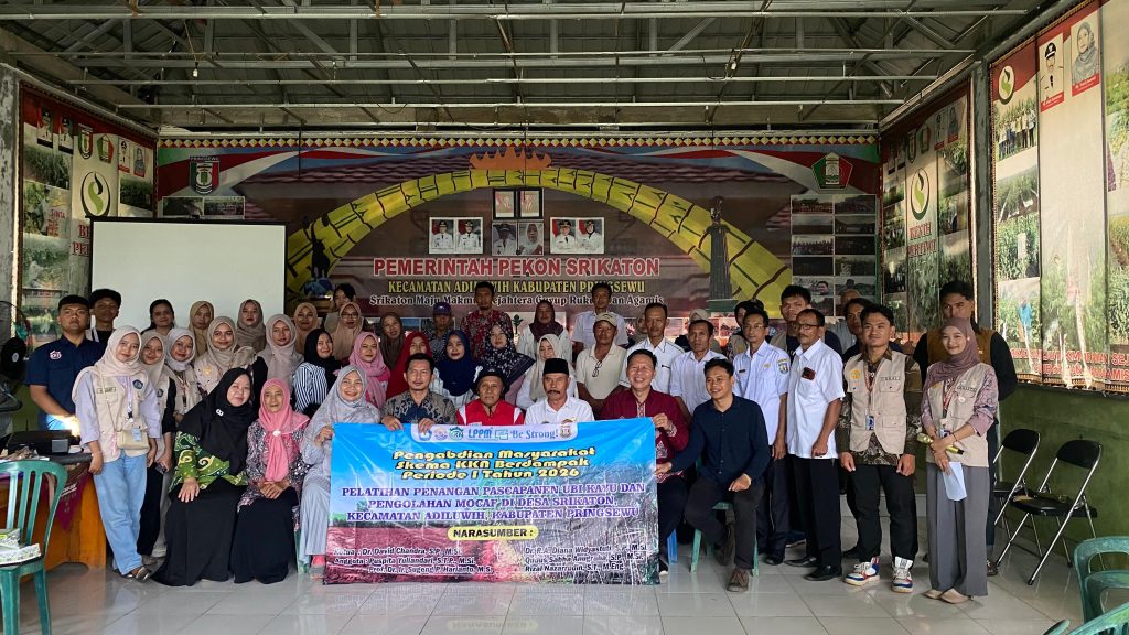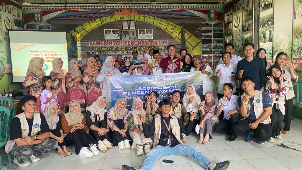 Enggal Rejo, 4 Februari 2026 – Pada hari ini, mahasiswa KKN mengikuti kegiatan sosialisasi pengenalan mocaf dan pameran produk olahan berbahan dasar mocaf yang dilaksanakan di Desa Srikaton. Kegiatan ini bertujuan untuk memberikan pemahaman kepada masyarakat mengenai potensi singkong sebagai bahan baku tepung mocaf serta peluang pengembangan produk olahan berbasis pangan lokal.