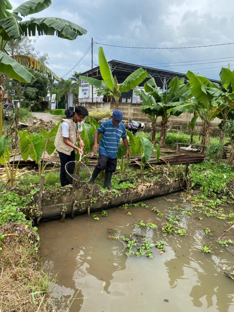 Kegiatan survei tersebut dilaksanakan dengan pendampingan Ketua Lingkungan I, Bapak Narwan, yang turut membantu serta mengarahkan mahasiswa dalam proses peninjauan lokasi. Salah satu lokasi yang disurvei merupakan kolam ikan milik Bapak Narwan yang berada di lingkungan Kelurahan Bumi Kedamaian. Lokasi tersebut dinilai memiliki potensi untuk mendukung pelaksanaan program kerja yang berkaitan dengan pemanfaatan lingkungan dan pengelolaan sumber daya sederhana.