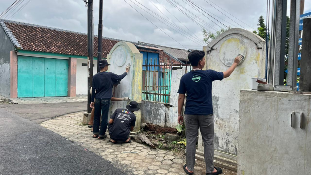 Pada hari pertama pelaksanaan, mahasiswa KKN melakukan tahap awal berupa survei kondisi gapura dan proses pengamplasan permukaan gapura. Survei dilakukan untuk melihat kondisi cat lama, tingkat kerusakan, serta menentukan bagian-bagian yang perlu diperbaiki sebelum dilakukan pengecatan ulang. Selanjutnya, pengamplasan dilakukan secara menyeluruh untuk membersihkan sisa cat lama dan meratakan permukaan gapura agar hasil pengecatan nantinya lebih rapi, tahan lama, dan maksimal.