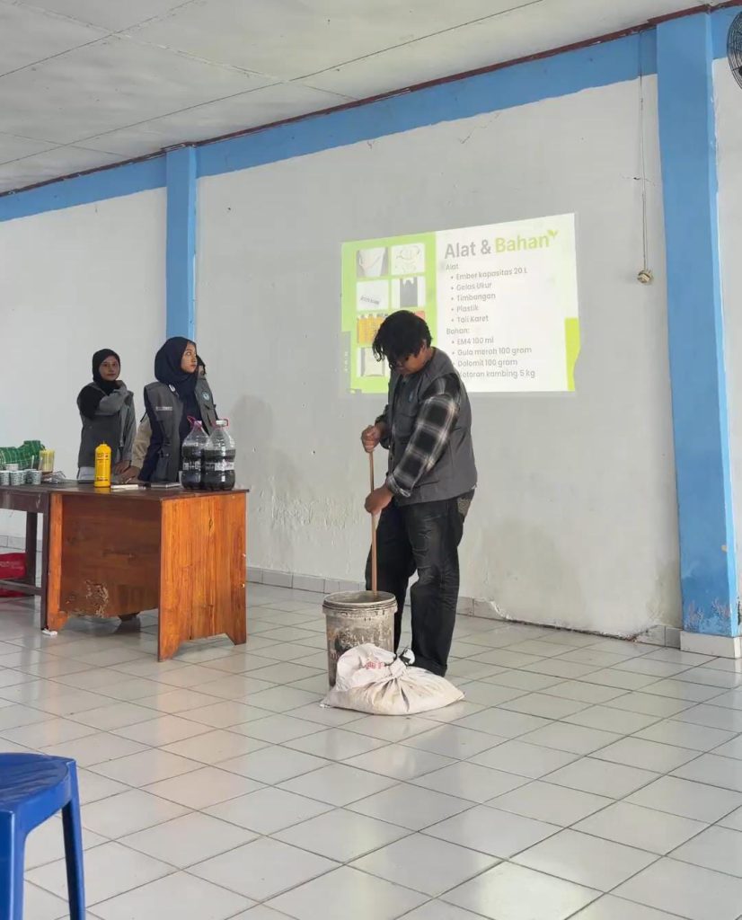 Selain itu, mahasiswa KKN juga menyampaikan materi mengenai cara pembuatan pupuk organik cair (POC). Pada sesi ini, dijelaskan bahan-bahan yang dapat dimanfaatkan, tahapan pembuatan, serta cara penggunaan pupuk organik cair pada tanaman. Sosialisasi ini bertujuan untuk mendorong pemanfaatan limbah peternakan agar dapat diolah menjadi pupuk yang bermanfaat.